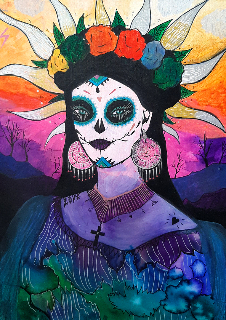 Akryl, akvarel a fixy na plátně / 70x50cm / 2022